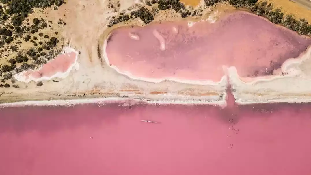The pink lake here looks like an overturned strawberry milk waterfall, and it can be called a harvester of girls' hearts in the Southern Hemisphere.