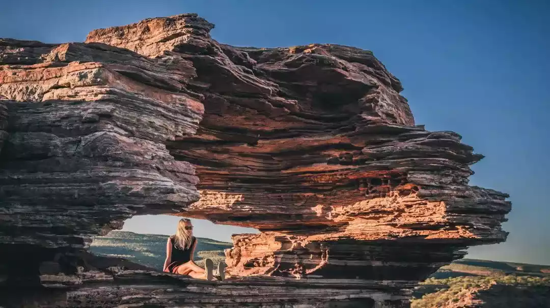 In Kalbarri National Park, Earth's growth rings unfold, and the red rocks of Nature's Window frame the Indian Ocean sunset. A casual photo would make it onto the cover of National Geographic! Far from light pollution, the Milky Way is so clear you can even see the outline of the Southern Cross.