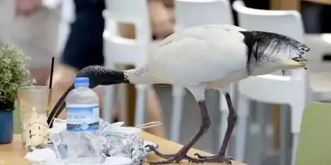 2️⃣The elegant white ibis has transformed into a "trash bird" at the entrance of a fast food restaurant