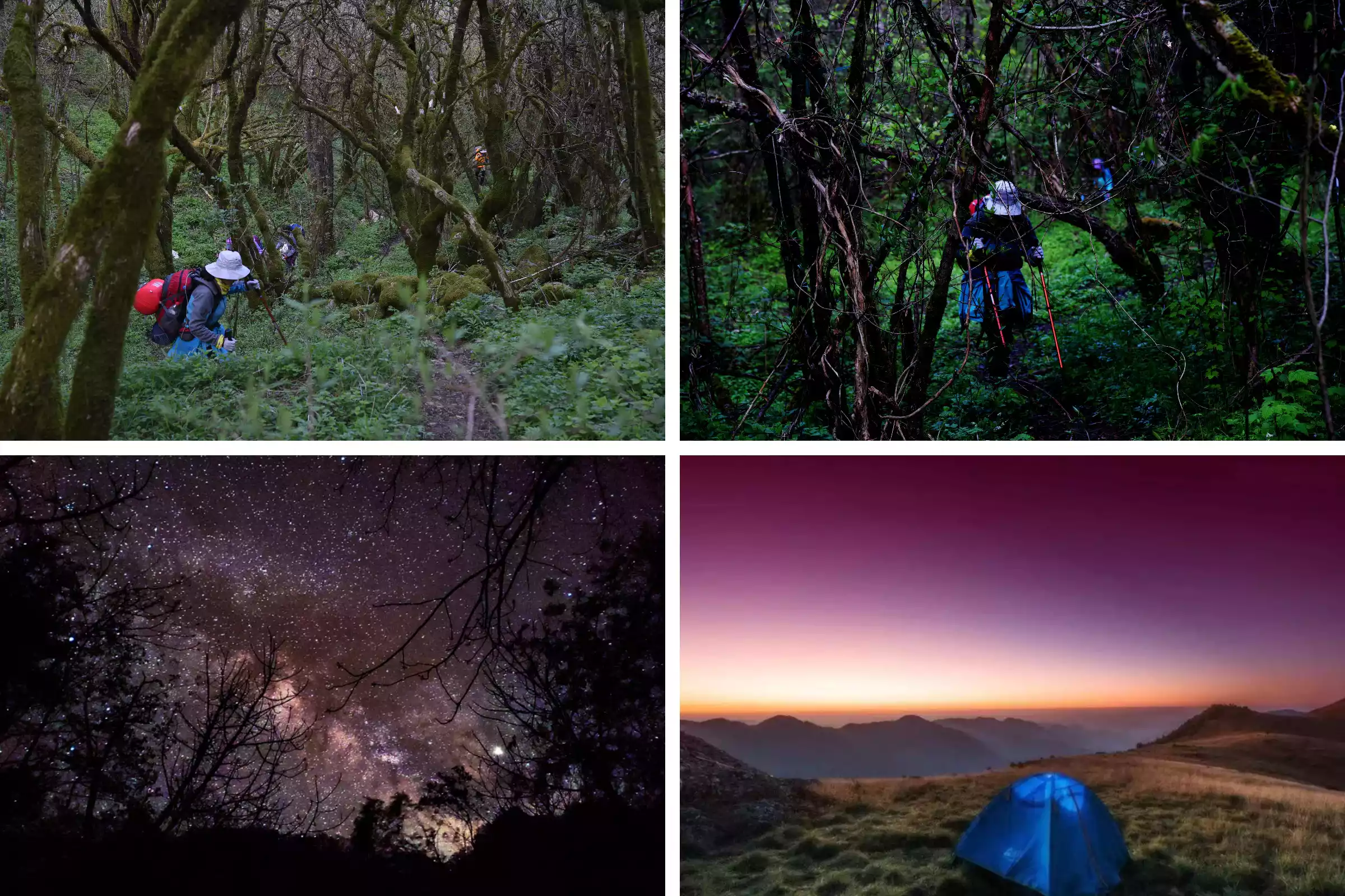 A three-day hike takes you through four major vegetation zones. The "Central China Meadow" at Laojunzhai, at an altitude of 2,900 meters, is full of golden lotuses and purple irises in summer, and you can observe the Milky Way at night.