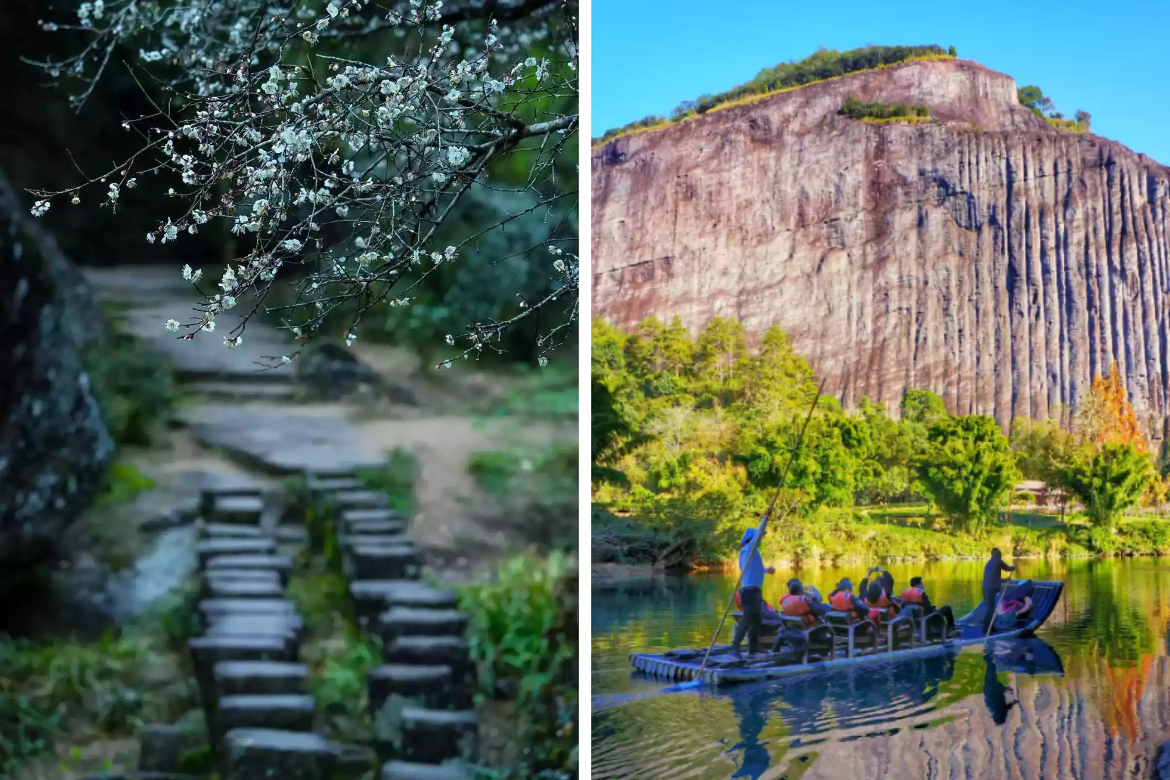 While other Danxia rocks compete for beauty, Wuyi Mountain has "rock charm" etched into its DNA. Hike along the rocky and floral trails, where tea trees grow tenaciously from the cracks of the Danxia rocks. Enjoy the scent of birdsong and the fragrance of flowers along the Tea Trail.