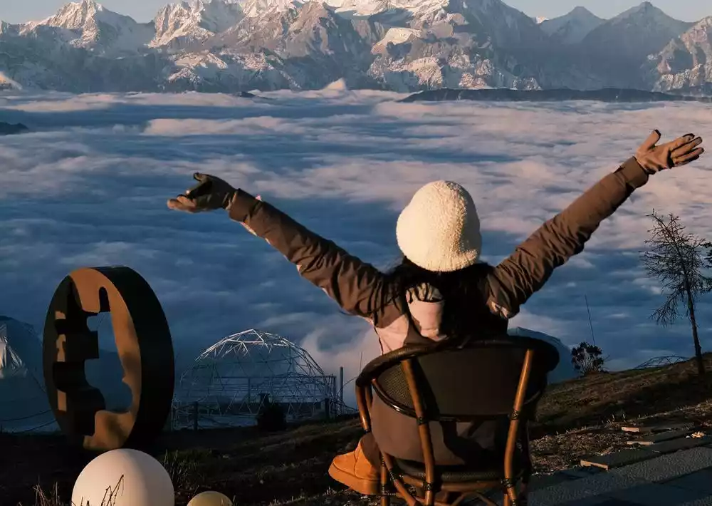 Three iconic destinations gathered in one itinerary! Niubei Mountain's sea of clouds, the Yuzixi Snow Mountain Observation Deck, the dazzling world of Xinduqiao, and the majestic Yala Snow Mountain... all in one! May Day trip confirmed! Stay at China-TravelNote's Niubei Mountain Xingchen Luxury Camp, a boutique, small-group experience, and enjoy a private escape.