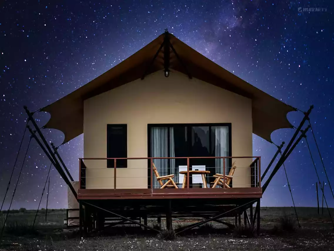 After sunset, the housekeeper turns on the heaters in each tent. Through the transparent dome above the tent, you can see the Milky Way stretching across the white stone cliffs. In the distance, the sound of a herdsman's whistle calling his sheepdog can be heard, gradually blending into the grassland night. The stars in the night sky will not disappoint you.