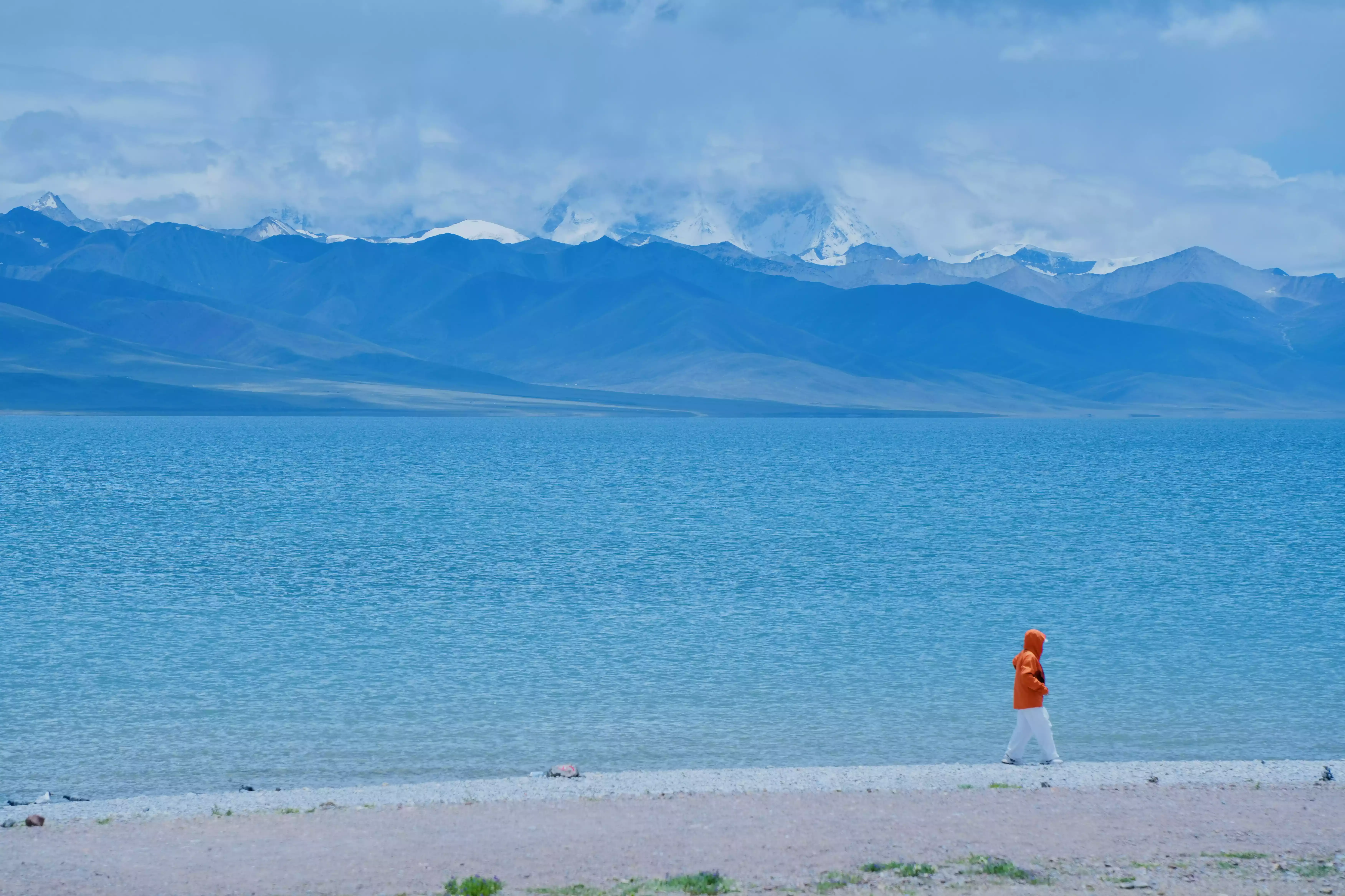 The clear Namtso Lake reflects the light of the sky and the shadows of the clouds