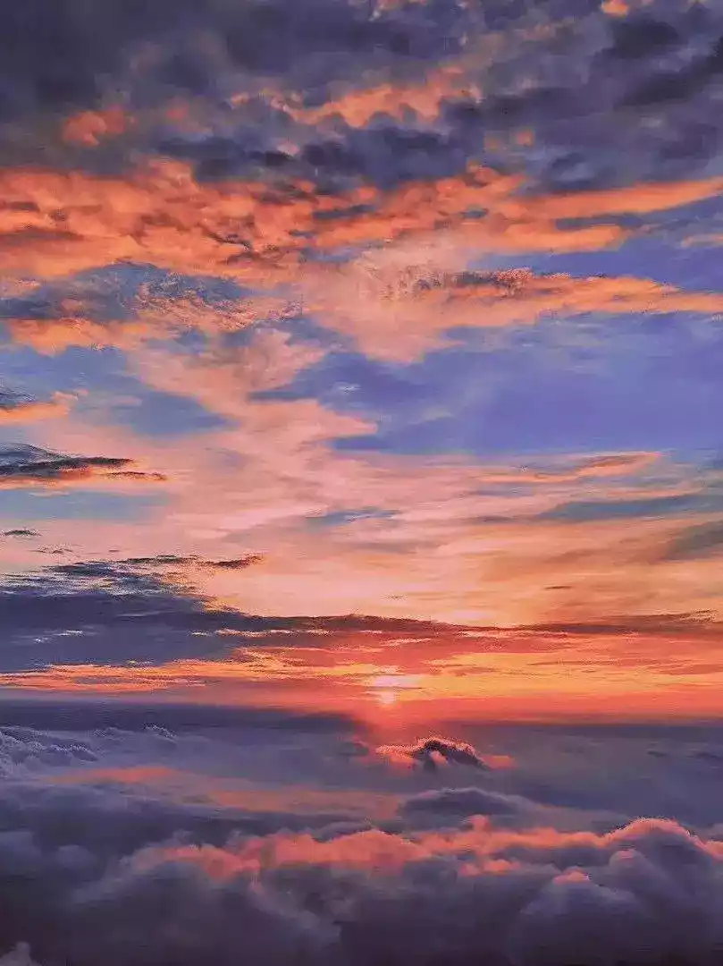 When the morning light first appears, the vast red clouds permeate the sea of clouds, and the meadows burn like flames,