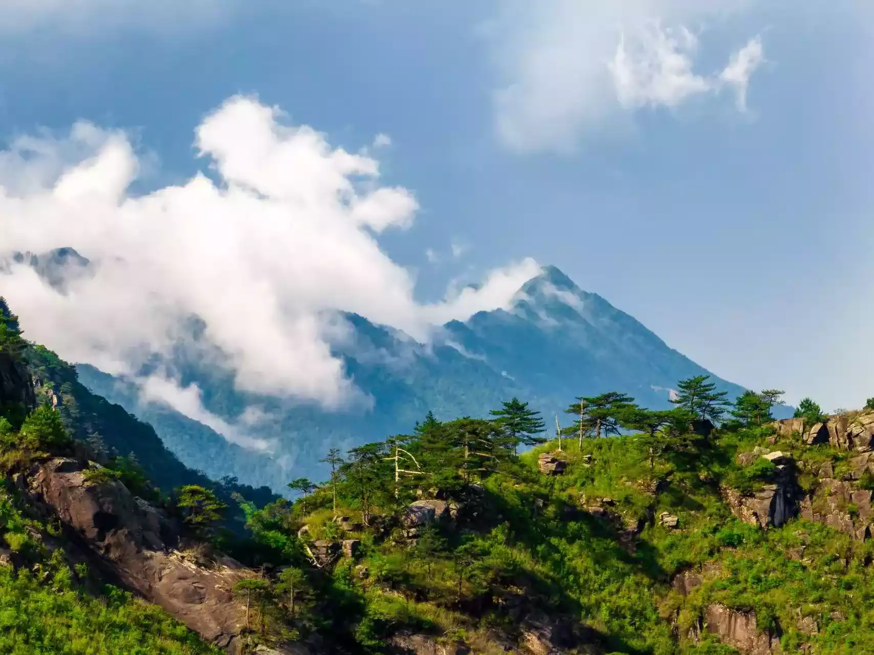 The main peak, Jinding, is 1,918 meters above sea level and is the highest peak in the Luoxiao Mountains.