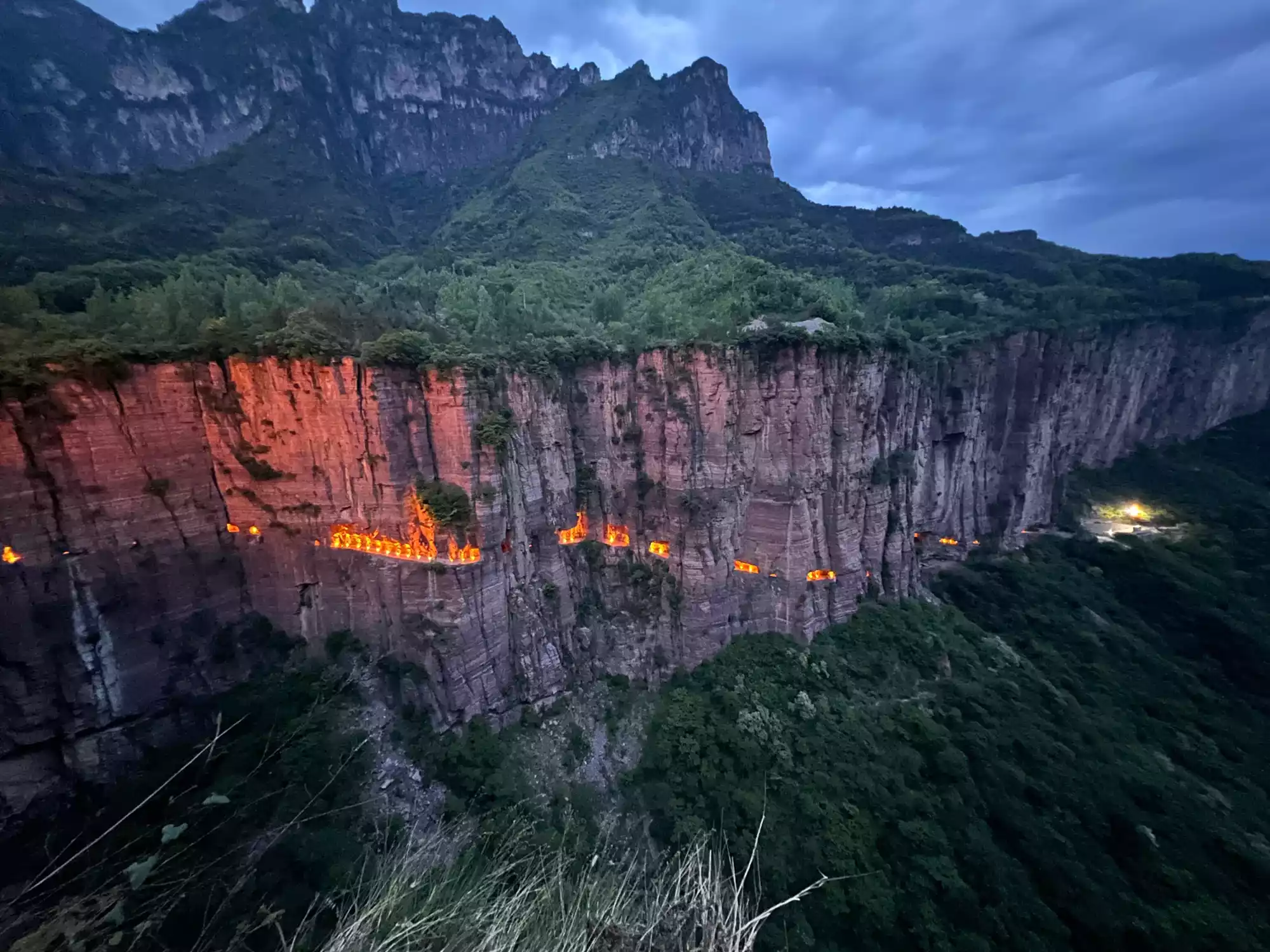 At night, you can also go to the cliff corridor to enjoy the night view of Guoliang Cave. Through the intermittent holes, the light and shadow are slanted, sometimes bright and sometimes dark, which is quite unique.