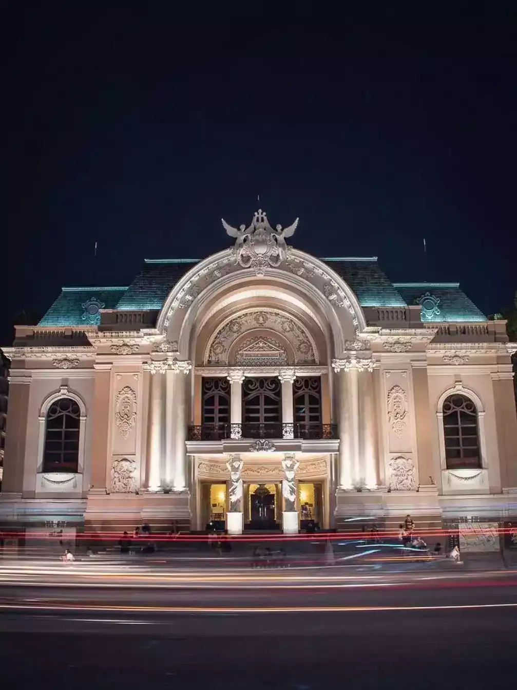 In 1897, the French relocated the entire Paris Opera House to the tropics, constructing this quintessential Baroque structure. Beneath its gilded, bas-relief dome, Vietnamese dancers tiptoe to tell the legend of the Mekong River. By day, this place serves as a showcase for colonial architecture, while at night, it hosts the "AO Show" bamboo pole dance and water puppetry.
