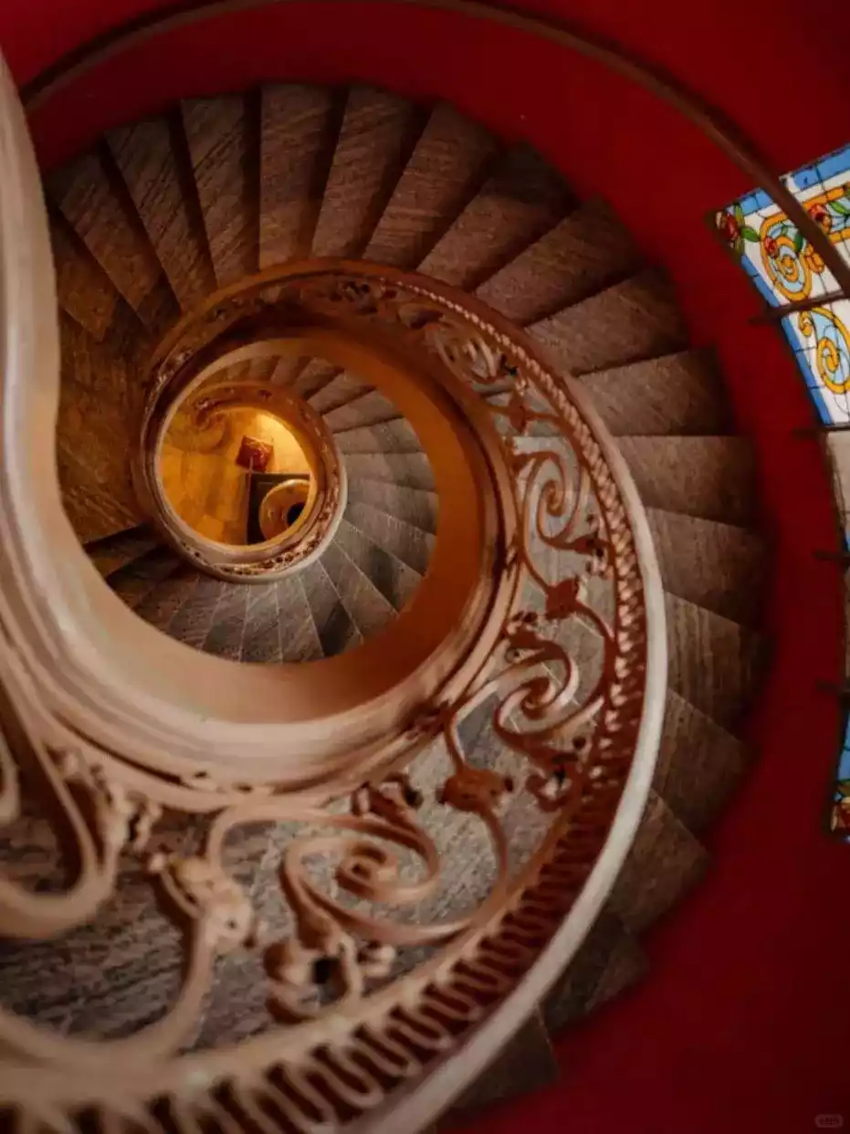 Sunlight filters through century-old Venetian blinds, casting dappled shadows on the spiral staircase. The mosaic floor tiles beneath your feet offer a vintage elegance, a perfect blend of Baroque refinement and Southeast Asian warmth.