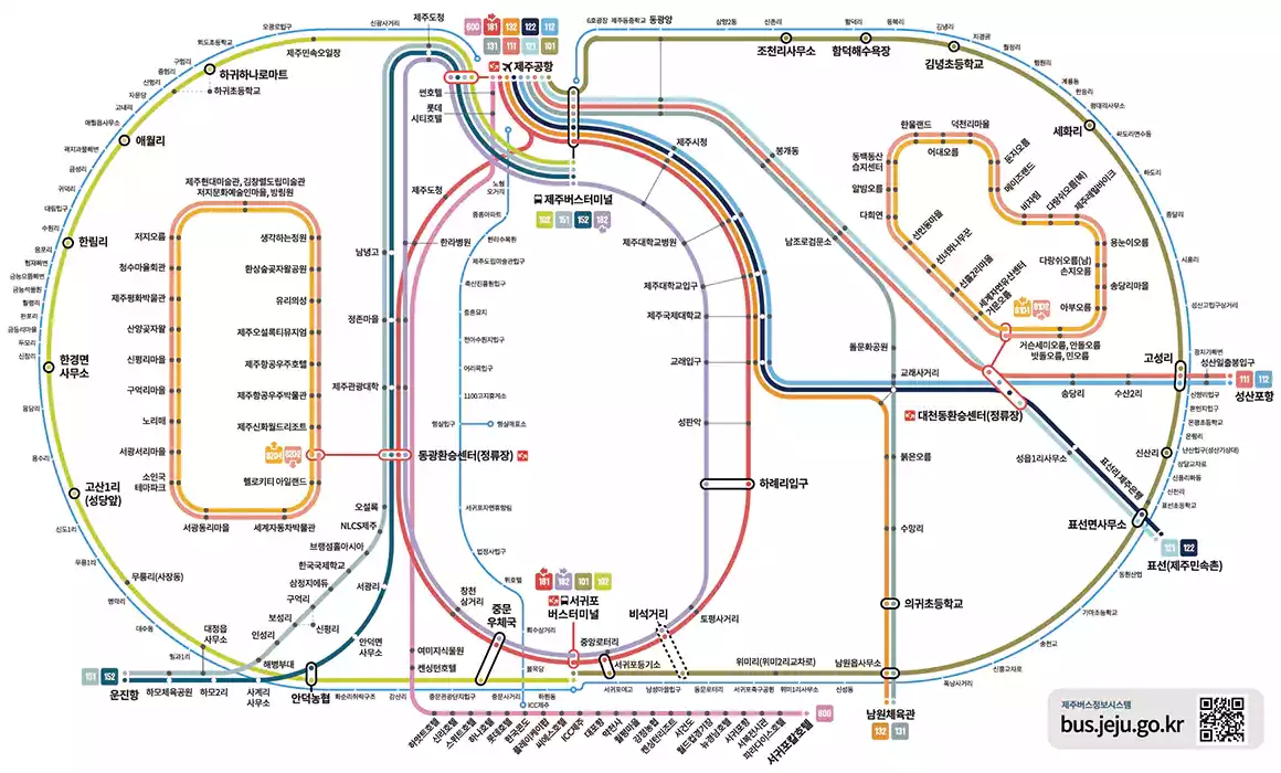 For example, the western route from downtown to Aewol-eup to Sajae Beach has over 60 stops, but don't be intimidated; it doesn't stop at every stop, so it takes just over an hour.
