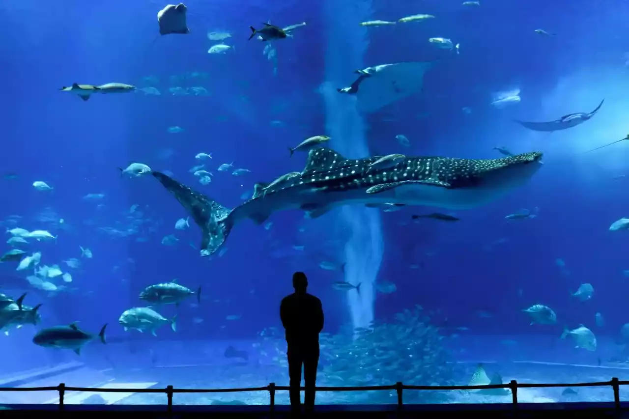 Churaumi Aquarium is undoubtedly a must-see in central Okinawa. 8.8-meter-long whale sharks dance with you through the window in front of the world's largest acrylic glass, the "Kuroshio Sea." A secret moment: After the 3:00 PM feeding show, the keepers open the top observation deck to witness the Tyndall effect created by sunlight penetrating 10 meters of water.