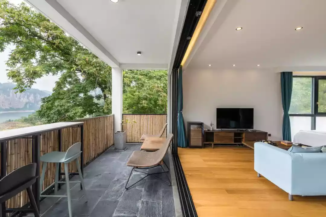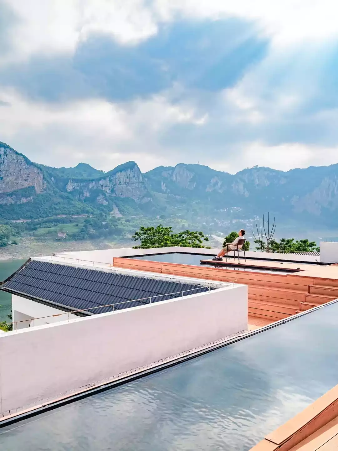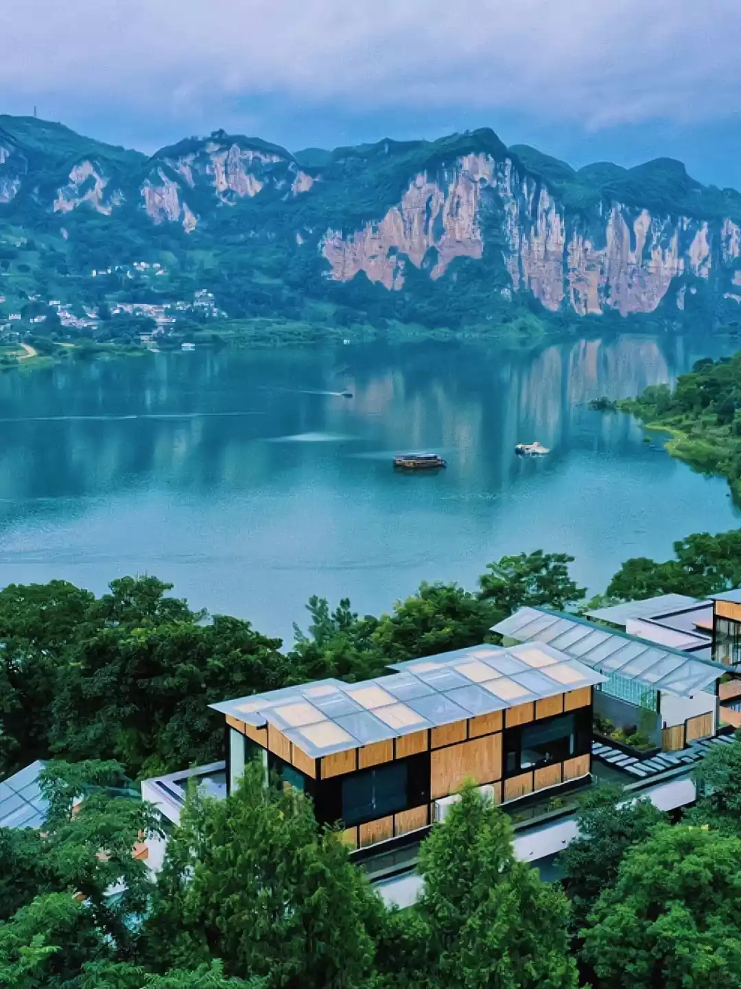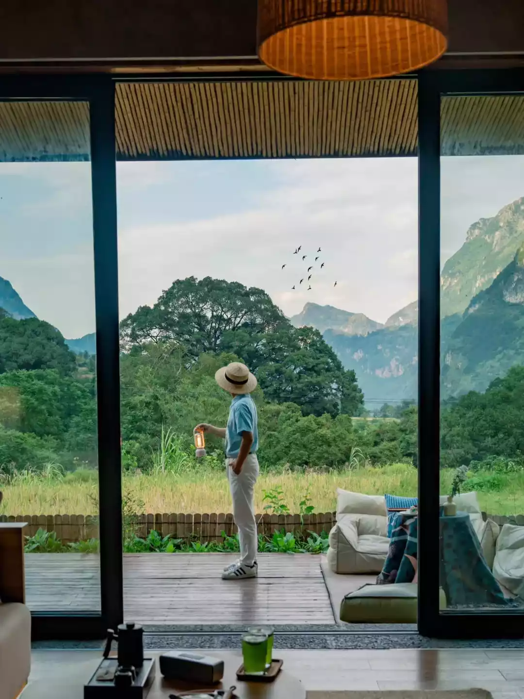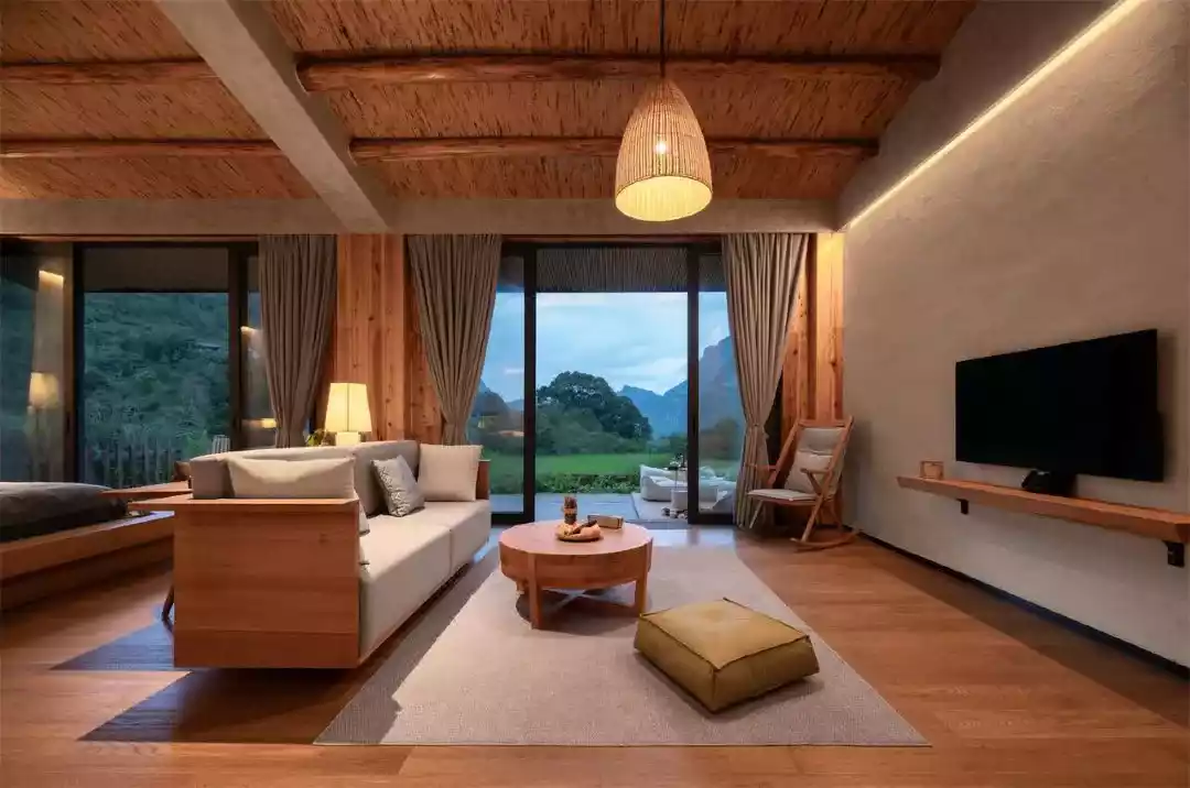 Puxu Huawu Mountain and River Boutique Resort B&B (Qianxi): A rustic luxury retreat on the banks of the Wujiang River. Instagram-style semi-glass rooms face the landscape directly, and the rooftop terrace offers panoramic views of the entire landscape. All-inclusive service is available, with fruit picking available from a 10-acre orchard. A swimming pool and music bar add to the romantic atmosphere.