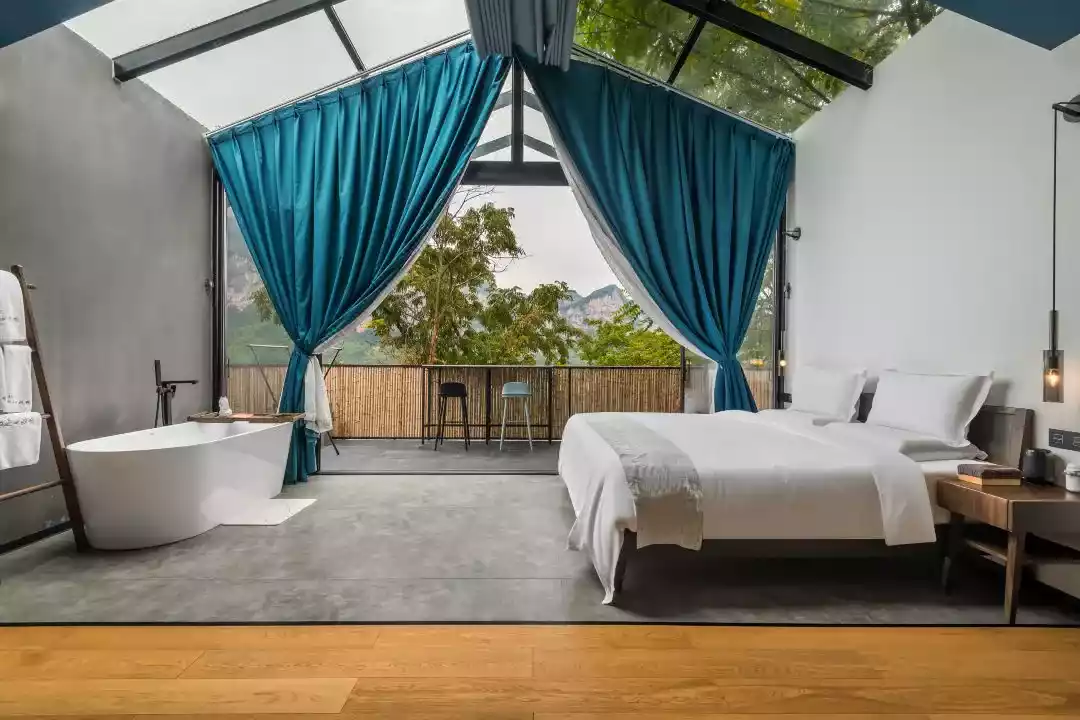 Heshanji Huawu Village Resort Hotel (Qianxi): Renovated from an old hotel, the hotel offers 18 riverside suites, each with a window opening to a breathtaking expanse of lush greenery, refreshing the lungs and eyes. Smart appliances are available throughout the property, and hiking and boating options are available.