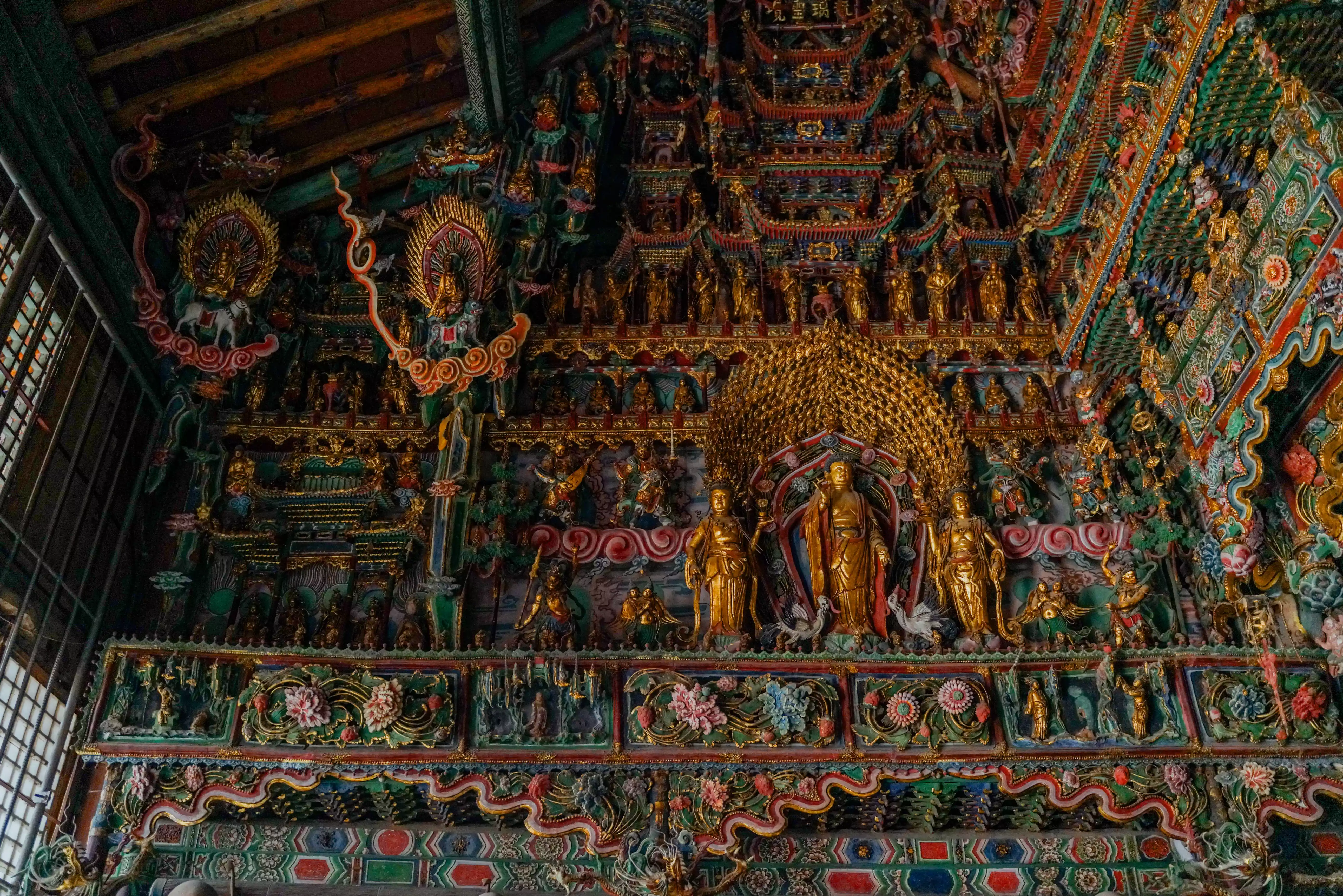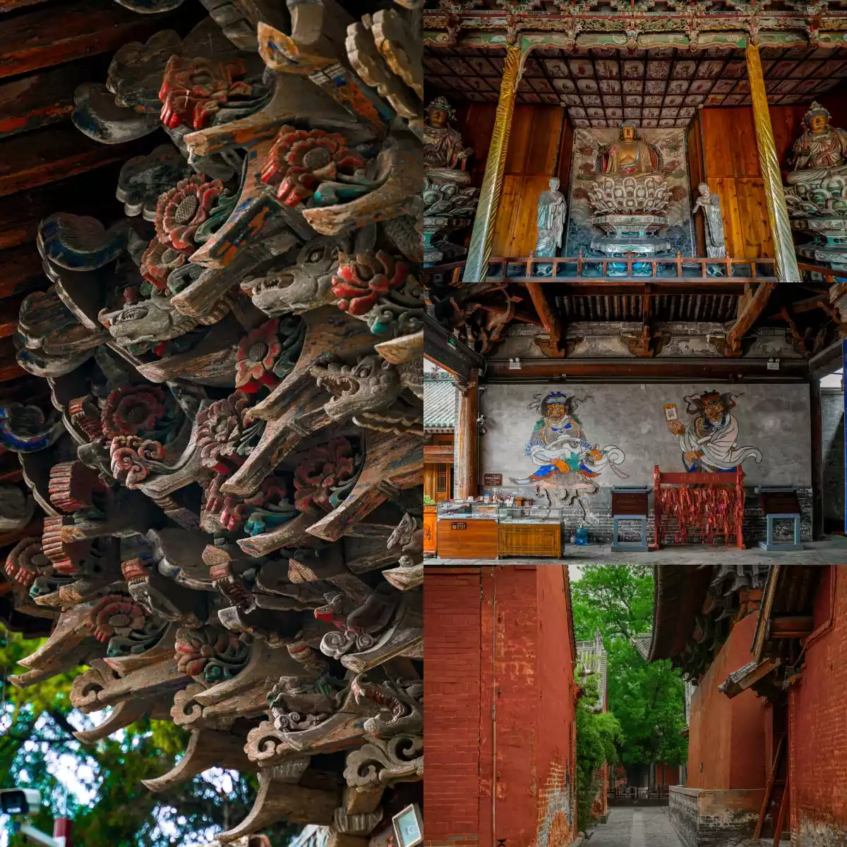 Four places filled with colorful sculptures of gods and Buddhas: Xiaoxitian Temple, Faxing Temple, Shuanglin Temple, and Zhenguo Temple