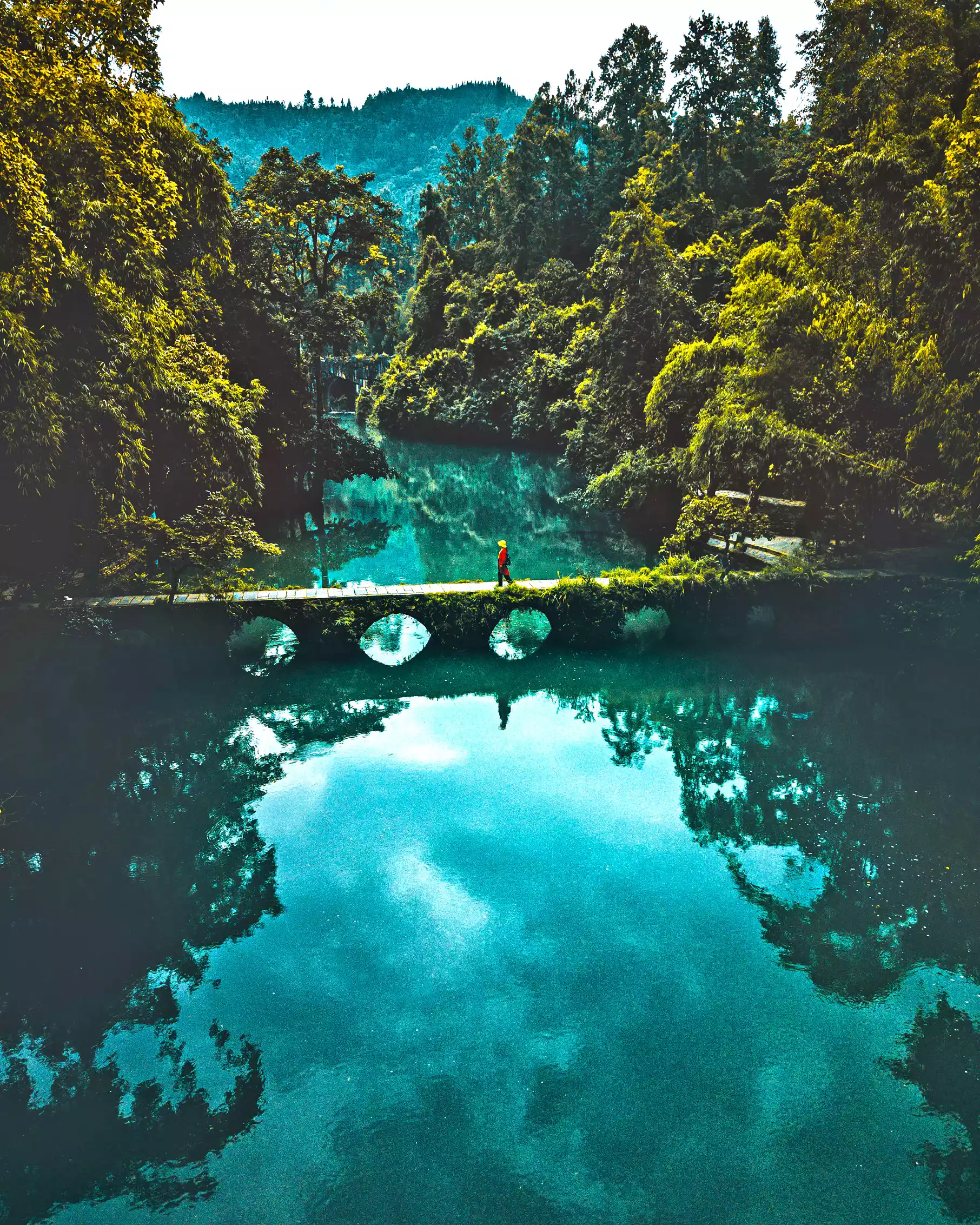 Xiaoqikong's unique karst topography creates a rich mineral-rich waterscape. Due to the mineral precipitation and light refraction, the waters are known for their multi-layered blue-green coloration, with variations in color depending on viewing angle and lighting.