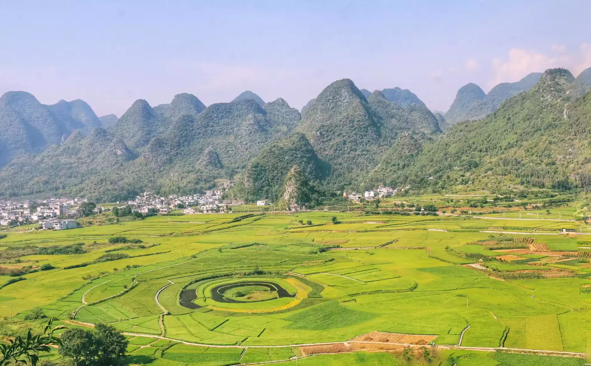 Enter this sea of peaks, walk slowly along the winding ridges of Baguatian, and be mesmerized by the green carpet dotted with smoke from Buyi villages. From the observation deck, gaze out into the distance, witnessing surging clouds and mist, peaks like spears, and several green mountains piercing the sky from the depths of the earth, forming a frozen, surging wave in the morning light or dusk.