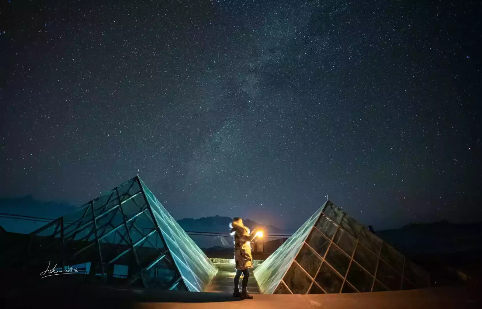 Check in at the Niubeishan Observatory, "China's first snow mountain cliff observatory", where the thousand-meter cliff is transformed into an excellent stargazing platform.