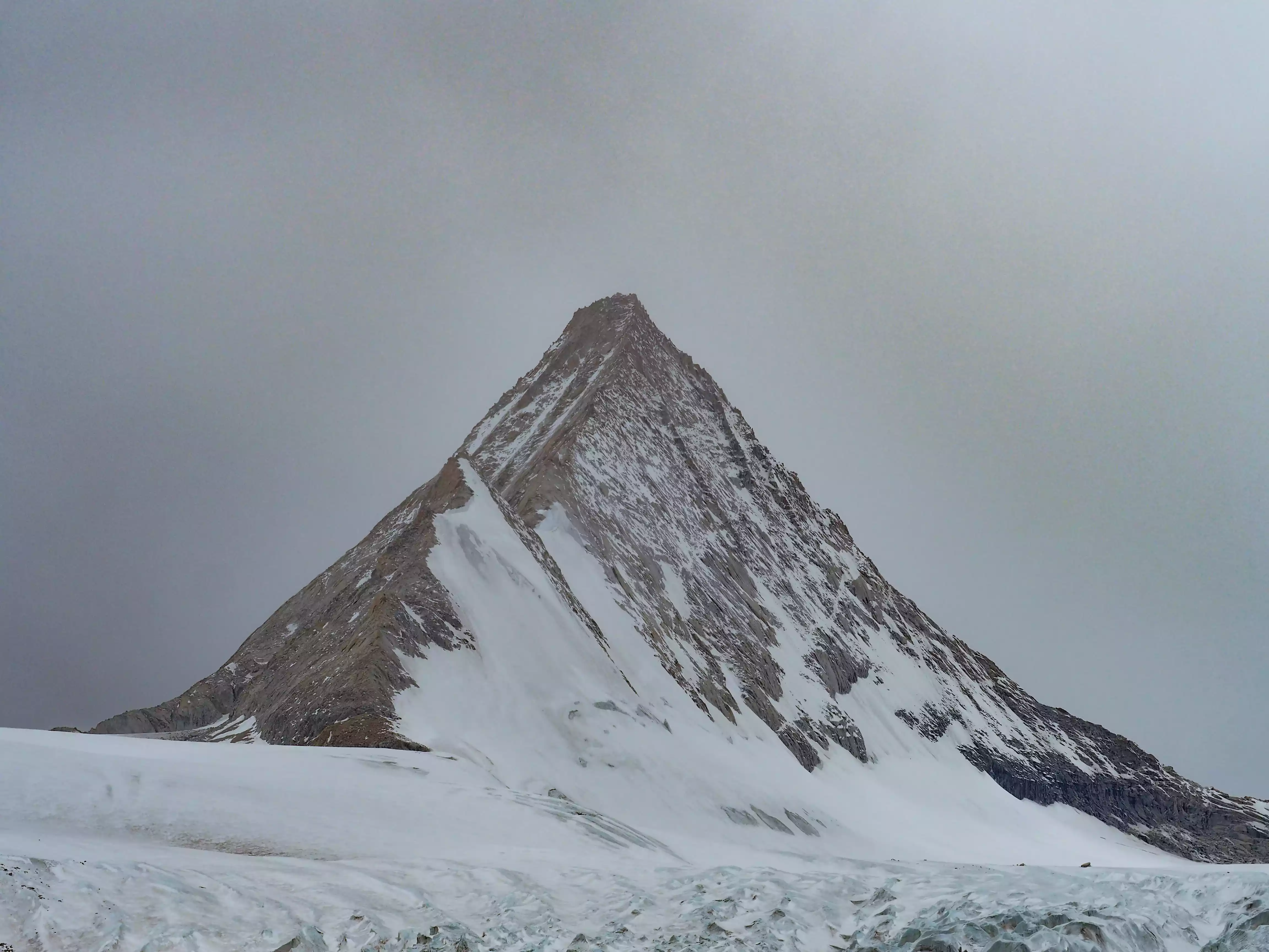 This snow-capped peak with a perfect pyramid shape