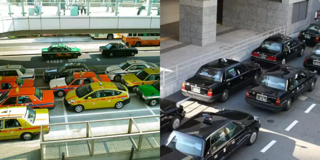 Taxi colors: Tokyo's are colorful, while Osaka's are basically low-key black.