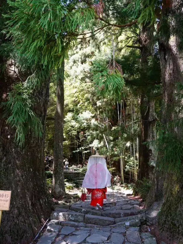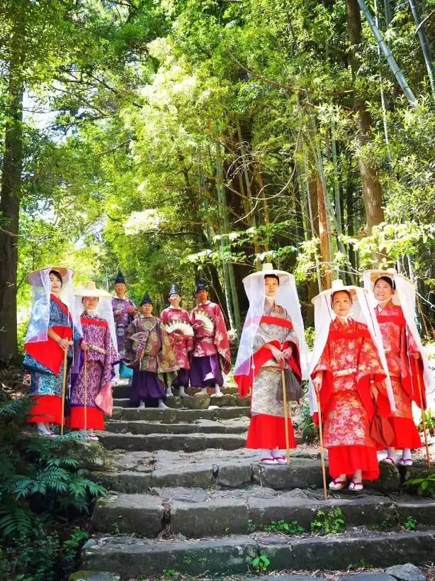 This spiritual trail through the Kii Mountain Range connects the Kumano Three Shrines (Hongu Taisha, Hayatama Taisha, and Nachi Taisha). Along the way, you'll pass through forests and overlook the sea, where vermilion torii gates, Nachi Falls, and ancient teahouses intertwine to create a unique landscape. You can also experience a Heian-era costumed pilgrimage, where you can dress up and embark on a spiritual journey reminiscent of the Heian nobles' pilgrimage.
