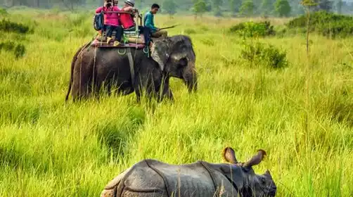After breakfast, we took an off-road vehicle into Chitwan National Park to photograph wildlife such as elephants, rhinos, and elks. When the sun shines into the jungle, the interaction between the wildlife and the lush scenery will become more vivid and interesting.