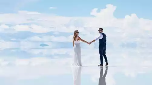Afterwards, we'll drive to the salt flats, visiting a train graveyard along the way. The town of Uyuni was once a major trading hub in western Bolivia. With changes in transportation, abandoned steam trains are now piled high in the desert, creating a unique landscape. We'll then drive to the village of Quercaní, where we'll visit a local salt factory and handicraft market. We'll then take a 4WD into the salt flats to explore the magnificent Sky Mirror.