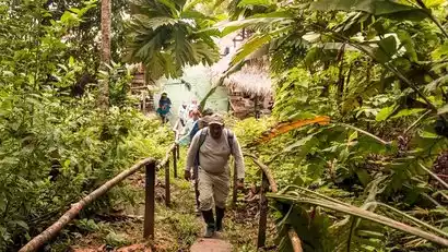 After lunch, you'll embark on a jungle hike: Follow your guide into the pristine rainforest, where he'll introduce you to local plants, fruits, and insects. The plants you encounter are new to you, and you'll be delighted to sample exotic fruits under your guide's guidance.