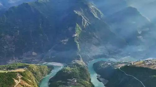 Gongdang Mountain is high above, overlooking the First Bay of Nujiang River and Bingzhongluo