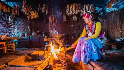 After dinner, we will go to a Lisu family's intangible cultural heritage home, sit around the fire pit, and explore the mysteries of Lisu musical instruments such as the mouth harp, qiben, and dilitu with the Lisu intangible cultural heritage inheritors. We will drink a sip of hot tea, taste the ethnic pestle wine, listen to the sounds from the canyon, and learn about the making and use of musical instruments.