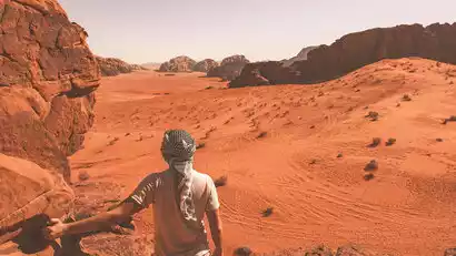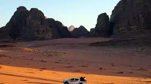 After breakfast, we'll drive to Wadi Rum, a renowned extraterrestrial landscape. As one of only 32 UNESCO World Heritage Sites, this stunning desert landscape is not only Jordan's, but also the world's. Its resemblance to otherworldly scenery has earned it the nickname "Valley of the Moon." The soft evening light casts a captivating rosy red across the desert, earning it the even more romantic, and tourist-favorite, name of "Rose Desert."