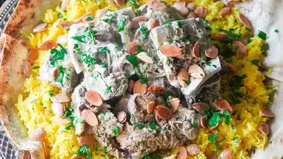 We'll then drive to the ancient city of Petra. But before entering the valley, we'll join China-TravelNote for a visit to a local home. The host will explain how to make mensaf, Jordan's national dish. This dish consists of rice spread over whole-wheat bread, topped with pine nuts, roasted whole lamb, and served with a yogurt sauce called jamid. Afterward, we'll chat with the locals and learn about their daily lives.