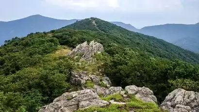 at 10:00, reaching the summit of Longwang Mountain and overlooking the Seven Peaks. We then continue along the ridge fire road, climbing and descending humps along the way.