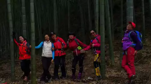 , we arrived at our destination. From 10:30 AM to 1:30 PM, we disembarked to warm up and set off. After about 90 minutes, we arrived at Yunshi Mountain in Xiaoshan. Crossing a small bridge, we found ourselves on an ancient path nestled in a bamboo forest, a tranquil setting filled only by the chirping of birds.