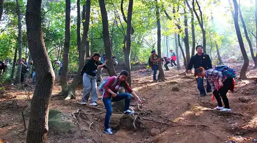 Around 11:00 AM, we began our ascent of Lingyan Mountain, known for its "Splendour of Lingyan Mountain Surpasses the South of the Yangtze River" and "Lingyan Mountain Surpasses the Tiantai Mountain." Its summit, crowned by a forest of massive rocks, afforded distant views of Gusu City. We then headed towards Baimajian, climbing steps, weaving through the woods, cautiously traversing gravel paths, and climbing rocks with our bare hands. We had lunch in time, then continued our journey along the smaller trails. The journey to Baimajian Scenic Area takes approximately four hours. Once there, we gathered to pose for more poses and soothe our muscles from the uphill climb.