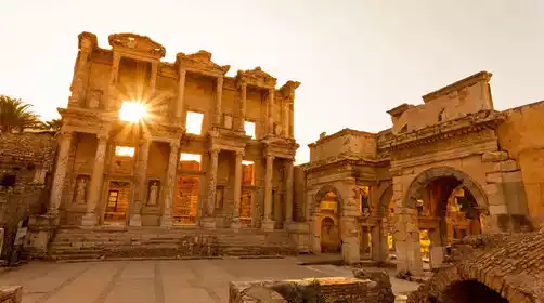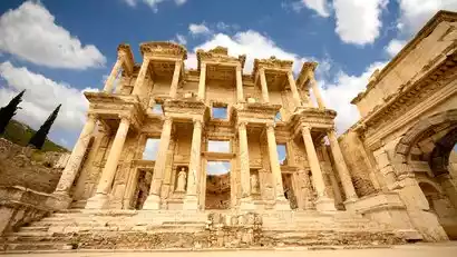 After breakfast, we'll journey through time and space to the ancient Greco-Roman city of Ephesus. This important city-state of ancient Greece was enormous, eight times the size of the renowned Pompeii! Built entirely of white marble, its remains include a 25,000-seat amphitheater, the Library of Celsus, an agora, baths, toilets, and more, highlighting the golden age of the Roman Empire in Asia.