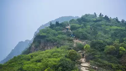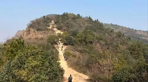 After crossing Huashan Mountain, you'll see a small temple at the foot of the mountain—the Hejiuling Puji Taoist Temple. After passing the temple, the mountain rises, and you'll continue along the ridgeline, descending Lushan Mountain to Lanfeng Temple (the vegetarian noodles here are a must-try for Lingshu hikers, and those who are more adventurous can try them here). At this point, Dayang Mountain can be seen in the distance.