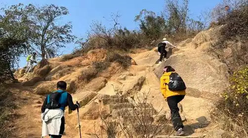 Arriving at the Lingyan Mountain scenic area gate, the group packed their bags. After a warm-up, we set off on our sprint! We traversed the stone steps, shaded by bamboo trees and pavilions, all the way up to the Lingyan Mountain Temple on the summit. We rested at the temple entrance and gazed out from the heights. The temple was bustling with incense, and pilgrims often prayed along the way. There were restrooms nearby if needed. We then joined the off-road path to the left of the guardrail and headed towards Dajiao Mountain. We found a scenic spot along the way for lunch and a rest break.
