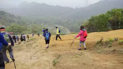 Arriving at the foot of Dayang Mountain, we reached the "Dayang Mountain Despair Slope." Resting every three steps, we stopped and walked, supporting each other, and finally reached the summit! The trail from then on was much easier, following the ups and downs of the mountain, with gentle slopes until we reached the exit of Shushan Village! After a long descent, we arrived at Shushan Gejiawu, where there were farmhouses and restrooms at the end.