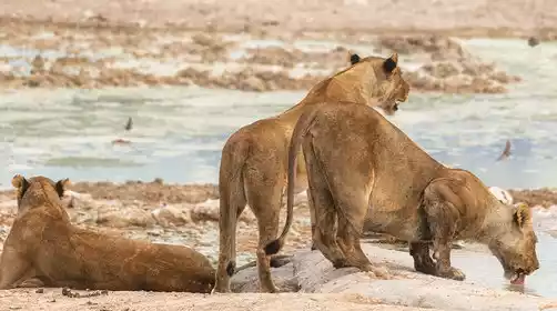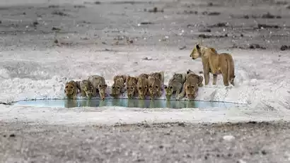 This is one of Africa's largest and most important wildlife reserves. Most of the time, it's dry, with only a few rainwater ponds scattered across Etosha like pearls, providing life-saving water for animals. To survive, animals must travel great distances to distant ponds for water. However, during the abundant summer rainy season, water accumulates, forming pools of varying sizes, attracting a large number of animals. These ponds offer a feast for the senses, perfect for capturing wildlife.