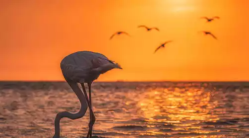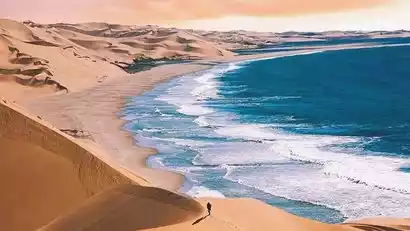 In the afternoon, we'll embark on another exciting excursion: Sandboarding at Whale Bay and Sandwich Bay. With the Atlantic Ocean on one side and the world's tallest sand dunes on the other, we'll capture the unparalleled spectacle of sand flowing into the sea! The desert stretches to the ocean, and the ocean flows into the desert, creating a magnificent symphony of sand and sea. Imagine speeding through the water in an off-road vehicle while taking in the action! Along the way, we'll pass a shallow beach, home to a flamingo habitat. We'll search for and photograph the beautiful flamingos, concluding our tour around 5 PM.