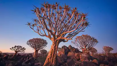 We'll then drive to the Quiver Tree Estate in southern Namibia. The quiver tree, actually an aloe barbadensis tree, reaches heights of 5-6 meters. It's named after the locals who often hollow out their branches to use as quivers. At night, try stargazing. Capturing Namibia's dazzling stars against the backdrop of a cluster of quiver trees is a classic photo spot. British photographer Florian Breuer captured his famous work "Quaver Trees Under the Stars" here. If the moon is full or weather conditions are poor, light painting sessions can be arranged.