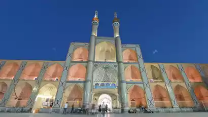 Then we will go to visit the [Jewel of the Rings Mosque], also known as the "Friday Mosque". This magnificent building is particularly eye-catching in the old city. Its height is one of the highest in Iran. Pronounced as Masjed-e Jameh in Persian, it is composed of four religious buildings from different eras, forming a mosque complex rich in historical connotations in Iran. The Jameh Mosque embodies the evolution of Islamic religious architecture over the past 800 years, and has characteristics of the Seljuk, Mongol and Safavid eras, which cannot be seen anywhere else in the world.