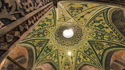We'll travel to the beautiful oasis city of Kashan, then visit the over 500-year-old Sultan Ahmed Hammam. Its exquisite interiors feature intricate dome patterns and distinctive hemispherical protrusions on the roof, resembling a UFO. We'll also visit the Brujerdi Mansion, located on Alavi Street in Kashan's Sultan Amir Ahmed district. Completed in 1876, it took 18 years to build. The owner of the mansion was Haki Sayyid Jafar Brujerdi, a wholesaler. The Kashan Cultural Heritage Administration is currently located here. We'll then visit the Tabatabai House, featuring a rectangular courtyard, the main building and surrounding walls, and a central rectangular fountain. These distinctive features of ancient Persian mansions are all embodied in this mansion, built by the wealthy merchant Sayyid Tabatabai in the late 19th century.