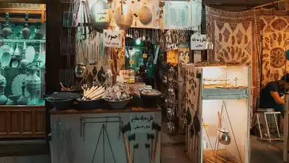 We'll then visit the Tomb of the Light King (note: cameras are prohibited here). This is the mausoleum of Ahmad, brother of the Islamic prophet Imam Reza, dating back to the 12th century. Standing before its blue-tiled dome and gleaming golden dome, this Shia shrine exudes a profound sense of tranquility. The numerous blinged-out mirrors embedded in the room add to its mystique. We'll then visit the Ali Ibn Hamza Mausoleum, also known as the Green Mirror Mosque, the mausoleum of Emir Ali, Shah Cheragh's nephew, who also died there. It shares a similar aesthetic with the Tomb of the Light King, but cameras are permitted inside! The interior, composed entirely of crystal glass and mirrors, is a dazzling sight.