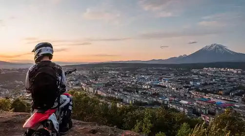 In the evening, we climbed to the top of Mishkin Mountain in the center of the city to overlook the entire city of Petropavlovsk and the magnificent Avachinsky Bay, until the sunset slowly fell into the sea behind the volcano.
