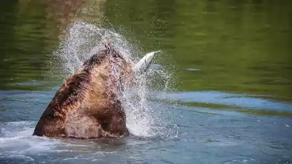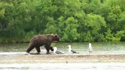 Lake Nachi is one of Kamchatka's best bear-watching spots. Tourists can get up close and personal (ranging from 50 to 200 meters). Brown bears prey on migrating salmon, and witness the annual bear fishing season. Kamchatka is one of the few places on Earth where all Pacific salmon species can be found.