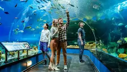 Explore the Vladivostok Oceanarium (inside). This unique aquarium, opened in 2015 with the ribbon-cutting ceremony by Putin himself, is a center of Russian science and education. Walking through the stunning transparent tunnel creates a sense of being underwater, while the trainers and dolphins entertain visitors with their captivating performances.