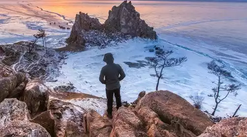 If it is still early when you arrive, you can go to Shaman Mountain under the guidance of the tour guide to watch the sunset. Tourists can stand on the mountain and overlook Shaman Rock and the vast Lake Baikal.