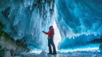 After a free lunch, enjoy a unique ice float experience on Lake Baikal. Donning red water-resistant thermal suits, tourists transform into crayfish on the ice of Lake Baikal, performing a variety of unique poses to capture memorable moments with their companions.