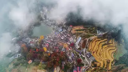Enter the entrance to the Linchuan Ancient Trail. Get off the bus, cross the bridge, and the Dongtiao River flows gently beneath your feet. As you ascend, golden ginkgo leaves, fiery red sweetgum leaves, and giant Torreya grandis trees sway in the breeze beside the mountain trail, as if offering a warm welcome.